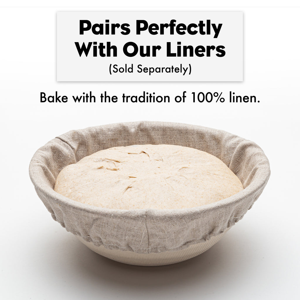 Liners are optional and come down to your personal preference. Using a banneton without a liner creates the rustic, spiral pattern on your loaf, while a liner gives a smoother surface easier for scoring.
